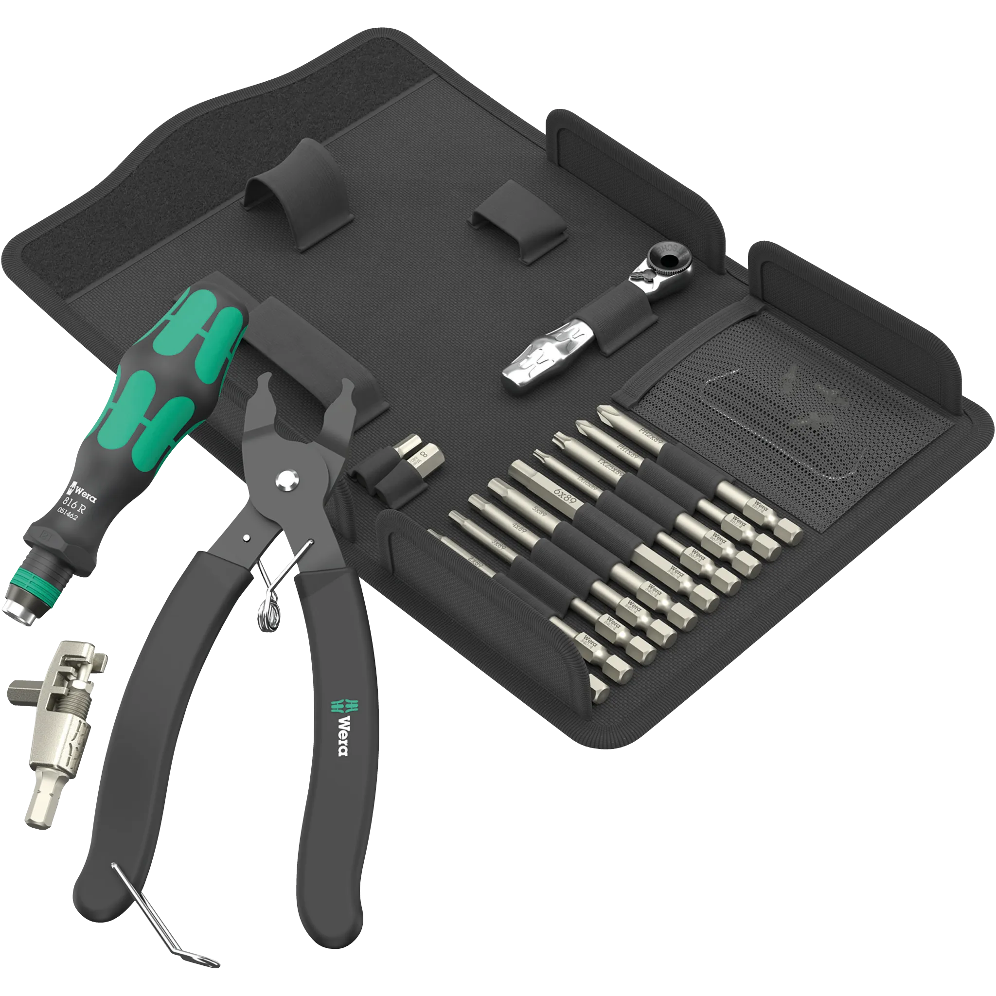 Kernstück des Sets ist der Wera Kettennieter, die Verschlussgliedzange und die kompakte Zyklop Mini Bit-Ratsche, die Dir auch bei wenig Platz maximale Flexibilität bietet. Der enthaltene Bit-Handhalter mit Rapidaptor-Schnellwechselfutter sorgt für blitzschnelle Bitwechsel, ganz ohne zusätzliches Werkzeug.