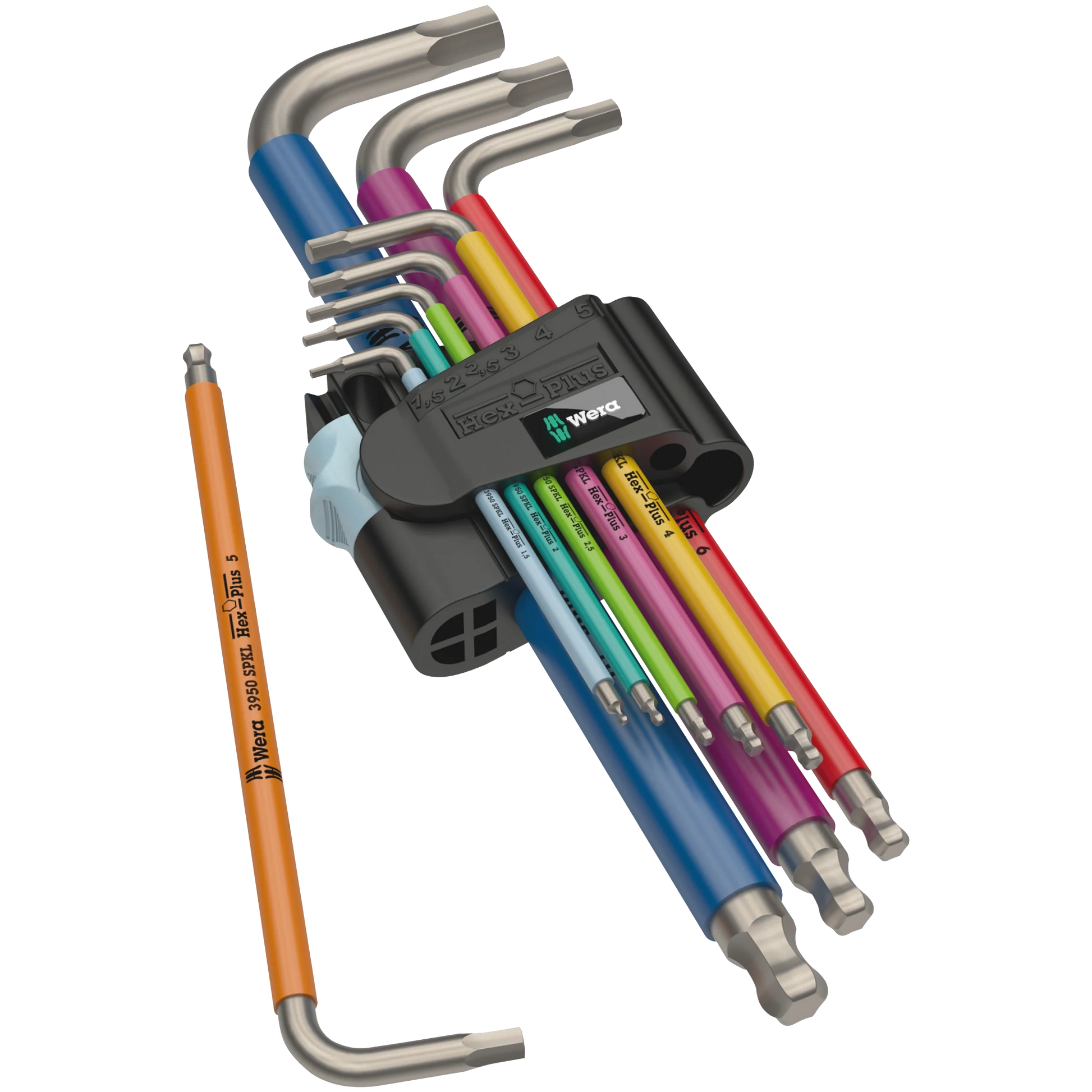 Unser Innensechskant Winkelschlüssel Edelstahl Set bietet Dir höchste Qualität und Funktionalität für präzises Arbeiten. Die hochwertigen, aus Edelstahl gefertigten Innensechskantschlüssel sorgen für die Langlebigkeit von Werkzeug und Schrauben. Unser spezielles Hex-Plus-Design bietet eine größere Anlagefläche im Schraubenkopf. Dadurch reduziert sich eine mögliche Zerstörung des Schraubenkopfes merklich und auch bei bereits abgenutzten Schrauben besteht noch eine Chance, diese zu lösen. Mit dem Kugelkopf am langen Schenkel kannst Du problemlos leicht um die Ecke und an schwierig erreichbaren Stellen arbeiten. "Take it easy" nennen wir unser System der Farbkennzeichnung nach Größen. Es hilft Dir, schnell das richtige Werkzeug zu finden. Im Handumdrehen kennst Du die benötigten Farben zu den Größen auswendig. Die aufklappbare Halterung ist praktisch für unterwegs und für zuhause. Zusätzlich liegt dem Set ein Winkelschlüsselclip bei, mit dem man die Innensechskantschlüssel hinstellen oder an der Wand befestigen kann.