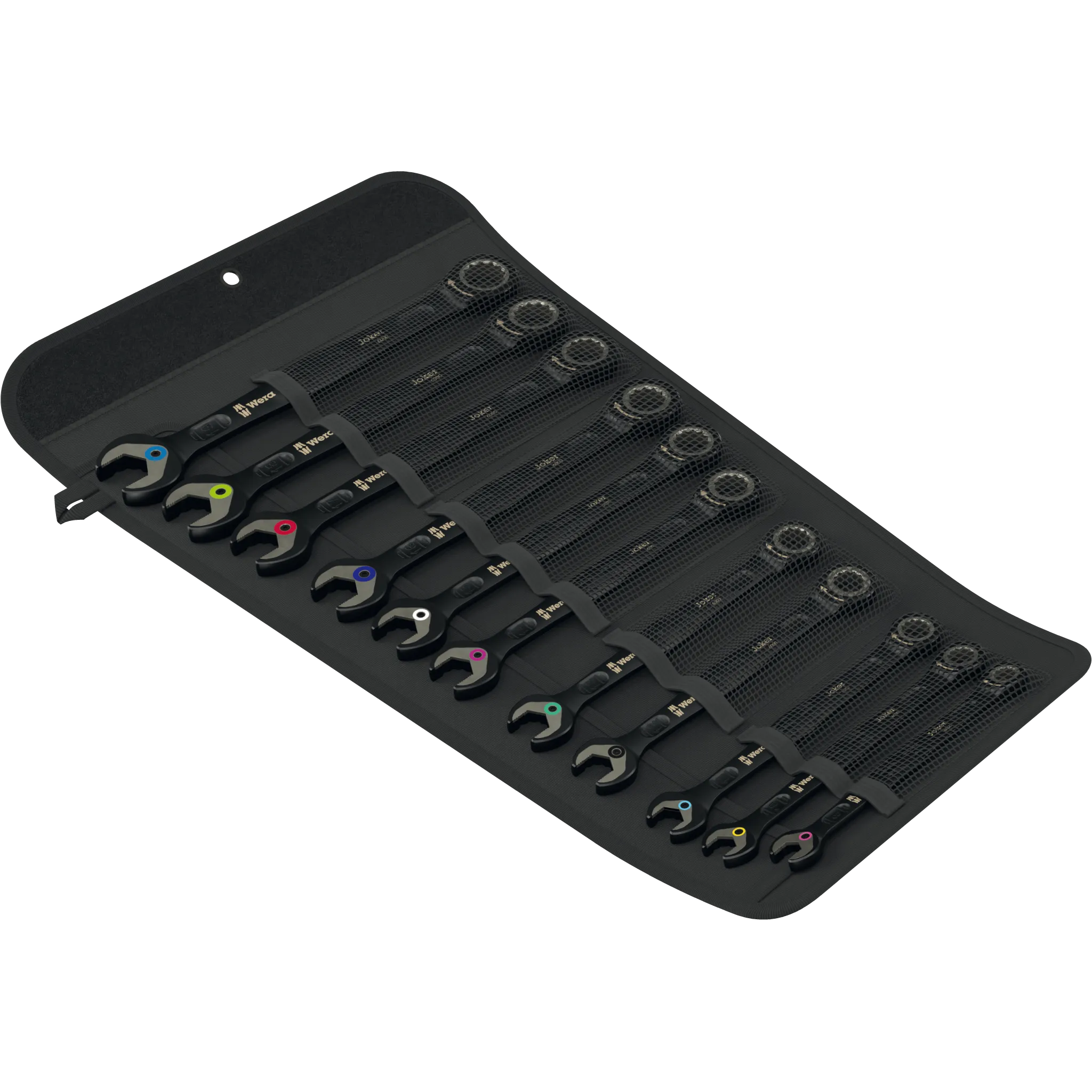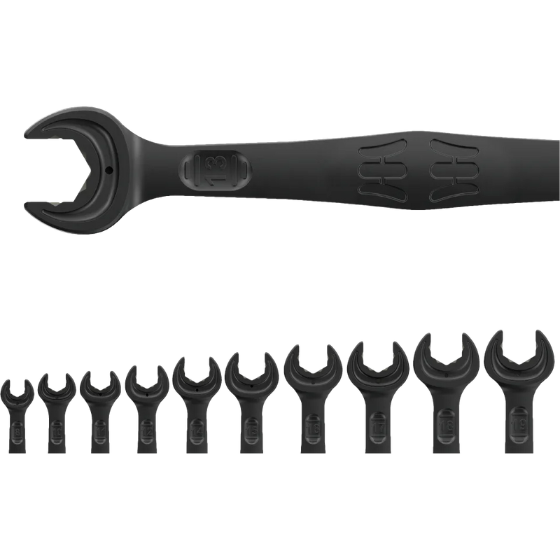 Das Joker 6000 Ringratschen-Maulschlüssel Set Black Edition verbindet starke Optik mit echter Arbeitsleistung. Die matt-schwarze Oberfläche ist ein absoluter Hingucker und ein tolles Alleinstellungsmerkmal – und trotzdem ideal für den täglichen Einsatz. Im Set sind alle gängigen Maulschlüssel-Größen enthalten. Die Haltefunktion mit Metallplatte fixiert Schrauben und Muttern sicher im Maul – besonders praktisch bei Über-Kopf-Arbeiten oder bei wenig Platz. Features wie die Doppelsechskant-Geometrie und den kleinen Rückschwenkwinkel machen die Joker besonders. Auf der Ringseite liefert die 80-Zahn-Ratsche feine Schritte und hohe Beweglichkeit. Die spezielle Schmiedegeometrie sorgt für hohe Drehmomentübertragung und hohe Biegesteifigkeit. Gefertigt aus leistungsfähigem Chrom-Molybdän-Stahl mit hochwertiger und robuster matt-schwarz verchromter Oberfläche. Innovative Schlüssel, einzigartige Optik und eine robuste Rolltasche - ein Set für Wera-Genießer.