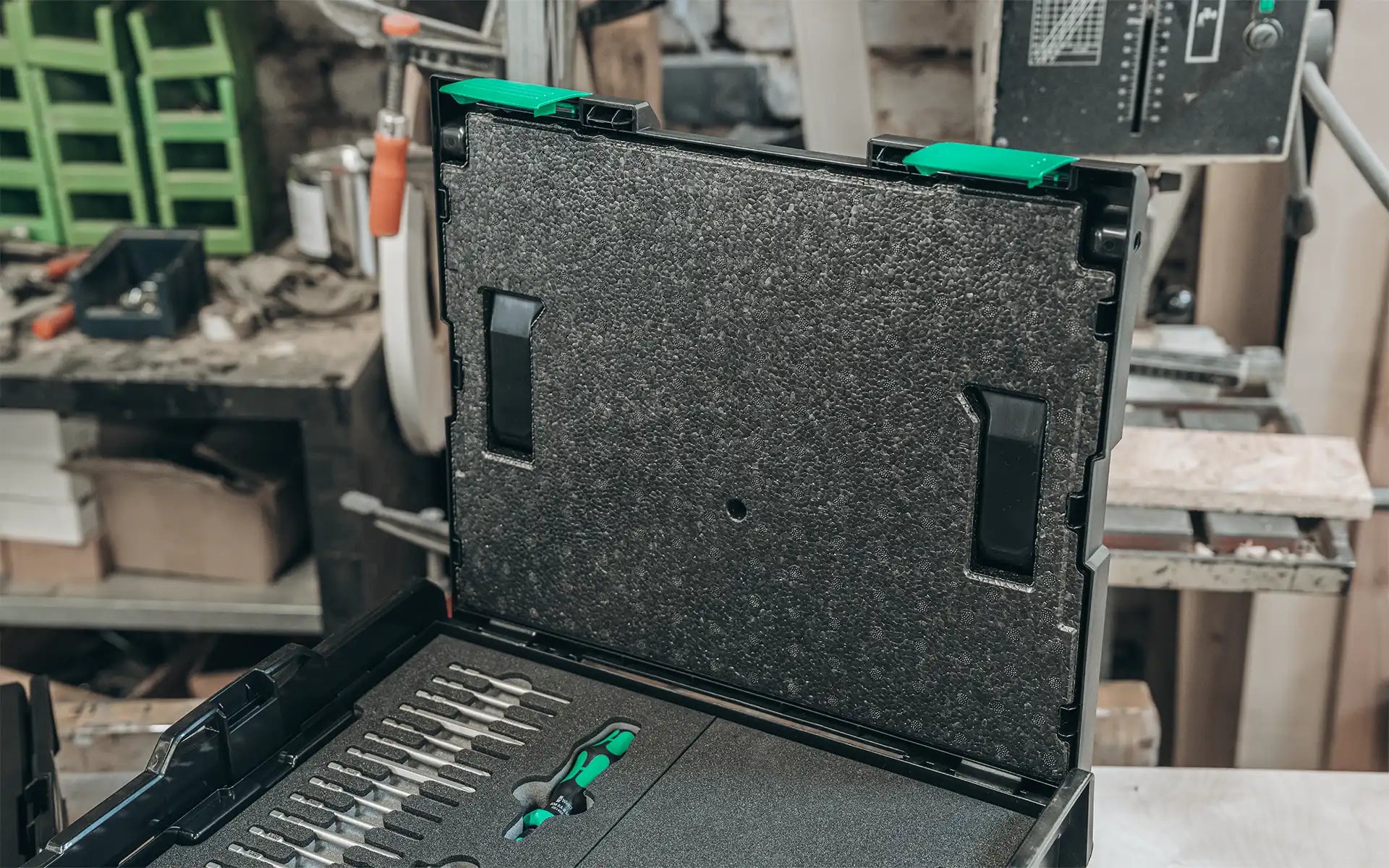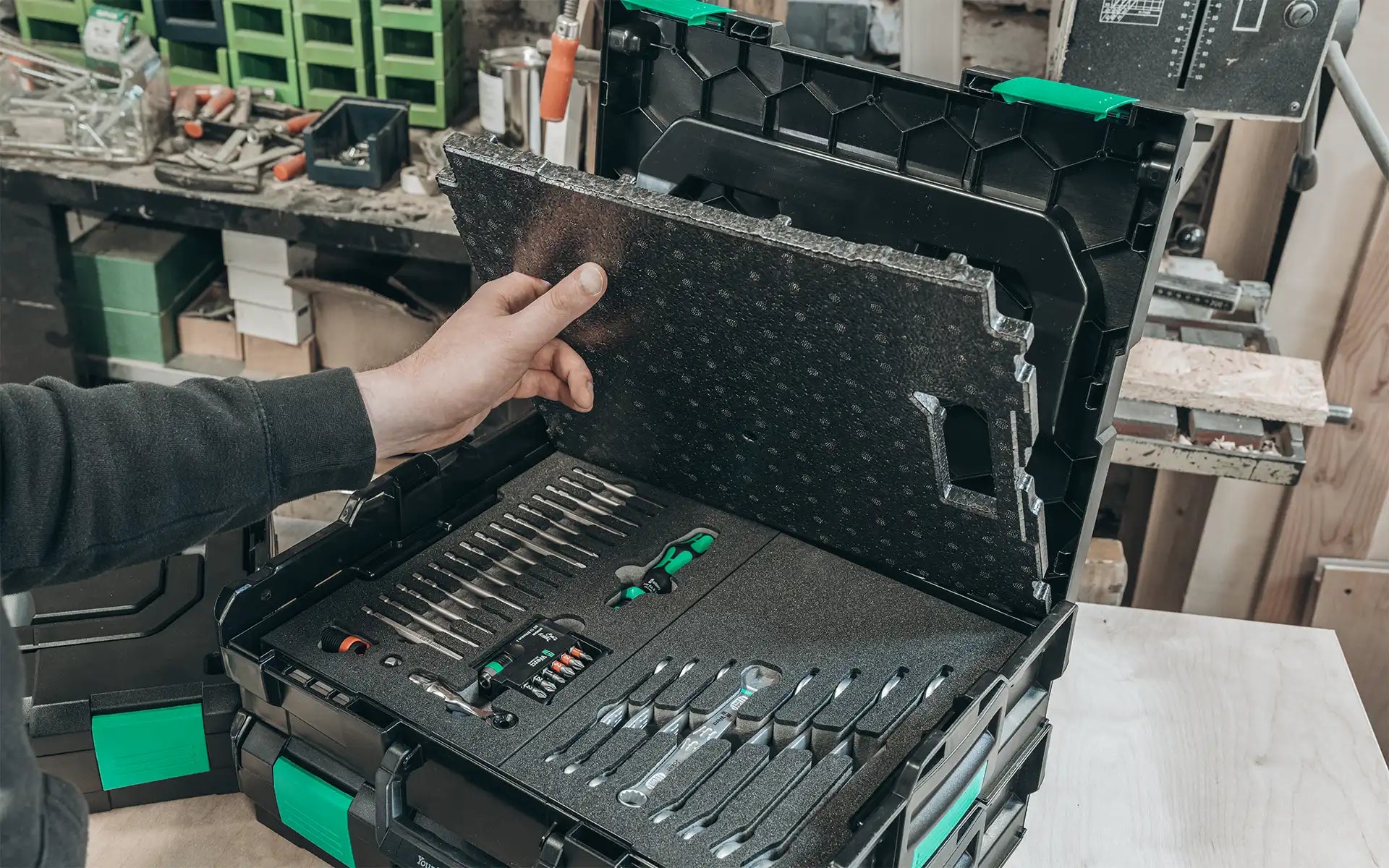 Ob auf der Baustelle, in der Werkstatt oder unterwegs – mit dieser Deckeleinlage bleibt Deine L-BOXX auch im rauen Einsatz ordentlich und sicher organisiert.