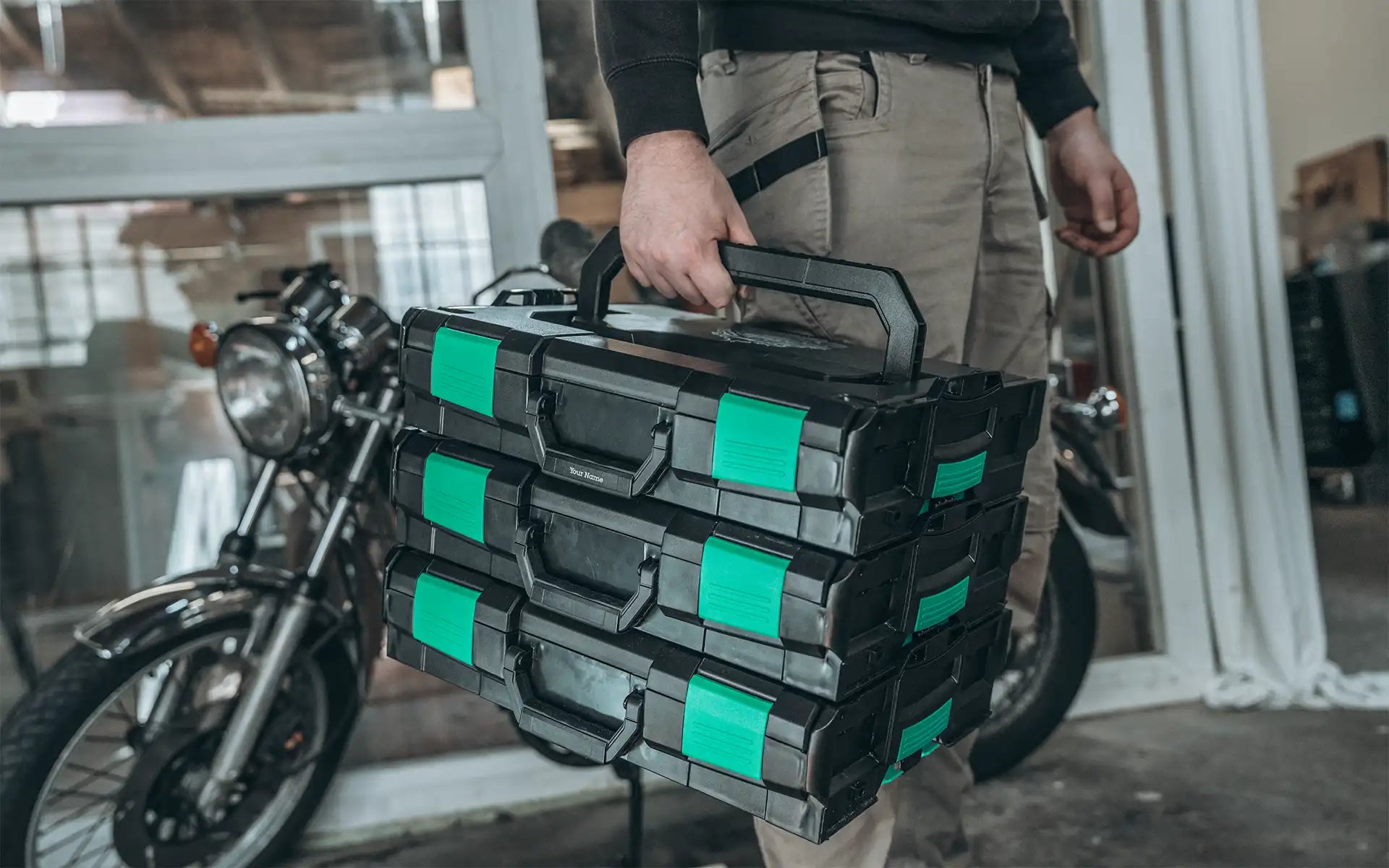 Mach die L-Boxx zu DEINER L-Boxx– mit dem Gravur Schild Griff L-Boxx. Das tiefschwarze, hochwertige Schild wird sicher am Griff Deiner Box befestigt und verleiht ihr im Handumdrehen eine persönliche Note. Ob Name, Spitzname oder der Inhalt der Box – Du entscheidest, was darauf steht.