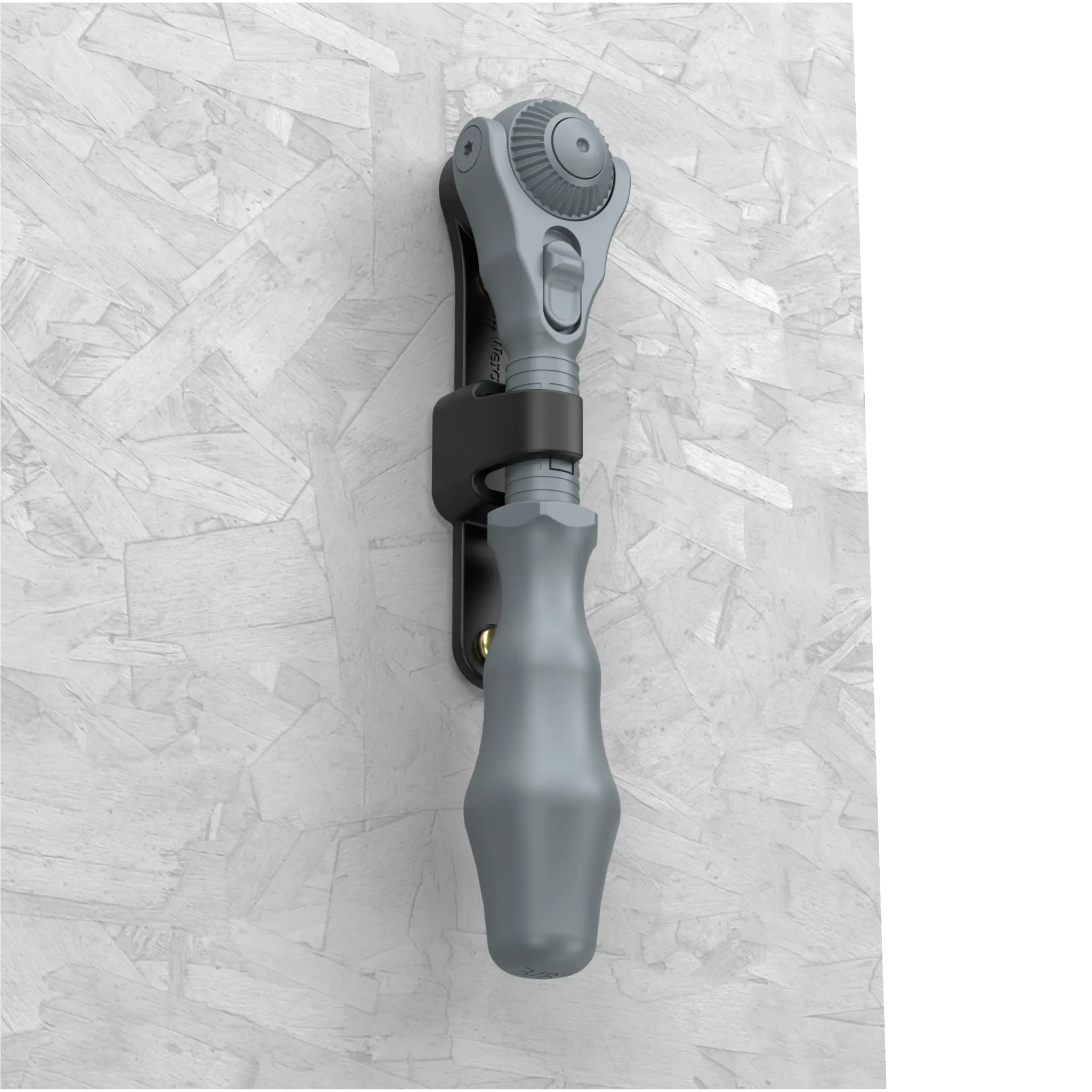 Mit der passenden Halterung für die Wera Zyklop Speed Knarre 1/4 Zoll hast Du Dein Werkzeug immer griffbereit – egal ob in der Werkstatt, am Montageplatz oder in Deiner Hobbygarage. Die Halterung lässt sich einfach an der Wand oder Werkbank montieren und sorgt durch ihre stabile Konstruktion für sicheren Halt. Das Einrasten der Zyklop Speed Knarre funktioniert schnell und zuverlässig – so bleibt Dein Werkzeug fest an seinem Platz. Gleichzeitig ist die Entnahme mit nur einem Handgriff möglich – perfekt, wenn es beim Schrauben schnell gehen muss. Das minimalistische Design passt sich nahtlos in Deine bestehende Werkstatteinrichtung ein. Die robuste Bauweise garantiert Langlebigkeit im täglichen Einsatz. Ob für Profis oder ambitionierte HeimwerkerInnen – mit dieser Halterung bringst Du Ordnung und Effizienz in Deinen Werkzeugbereich.
