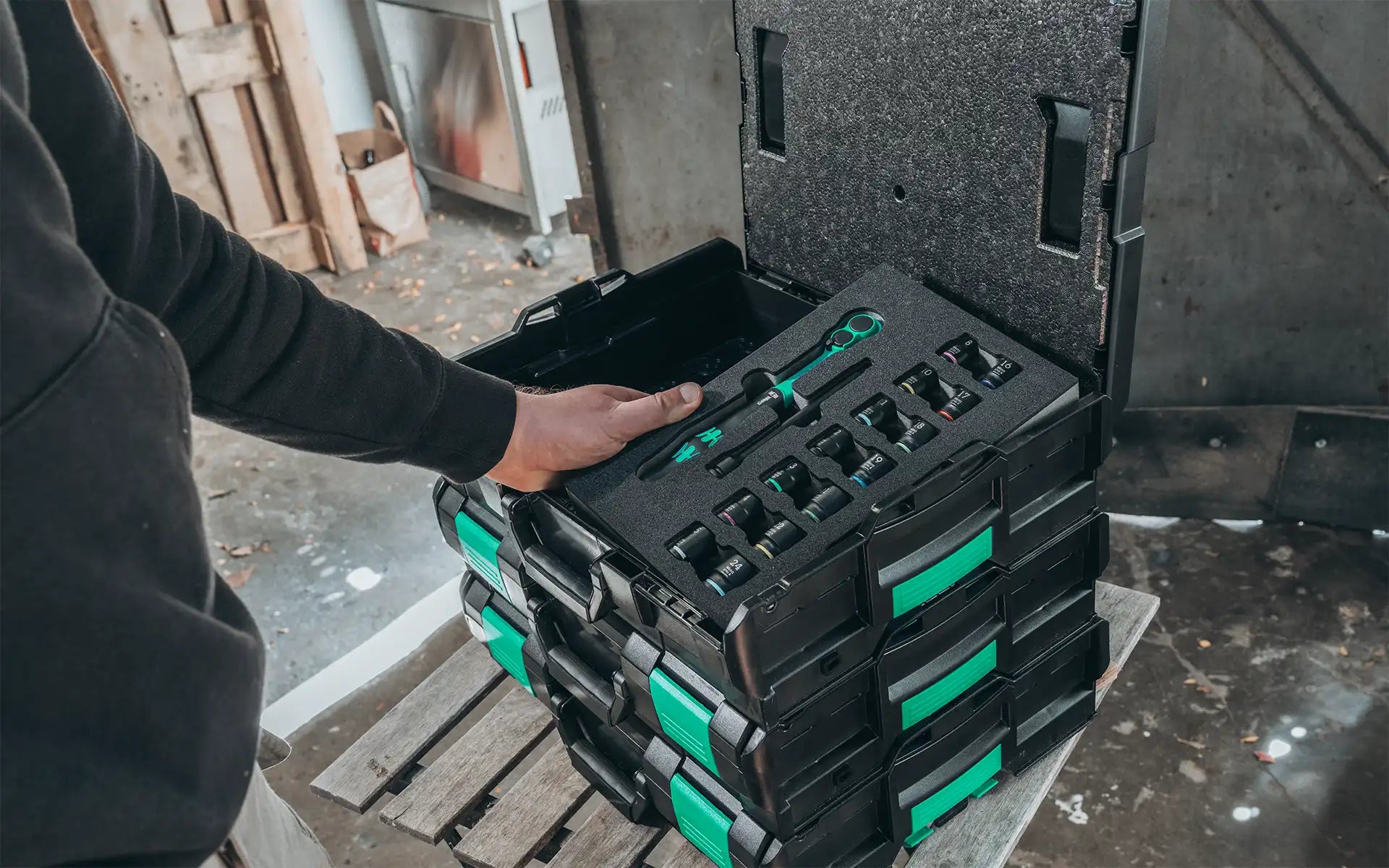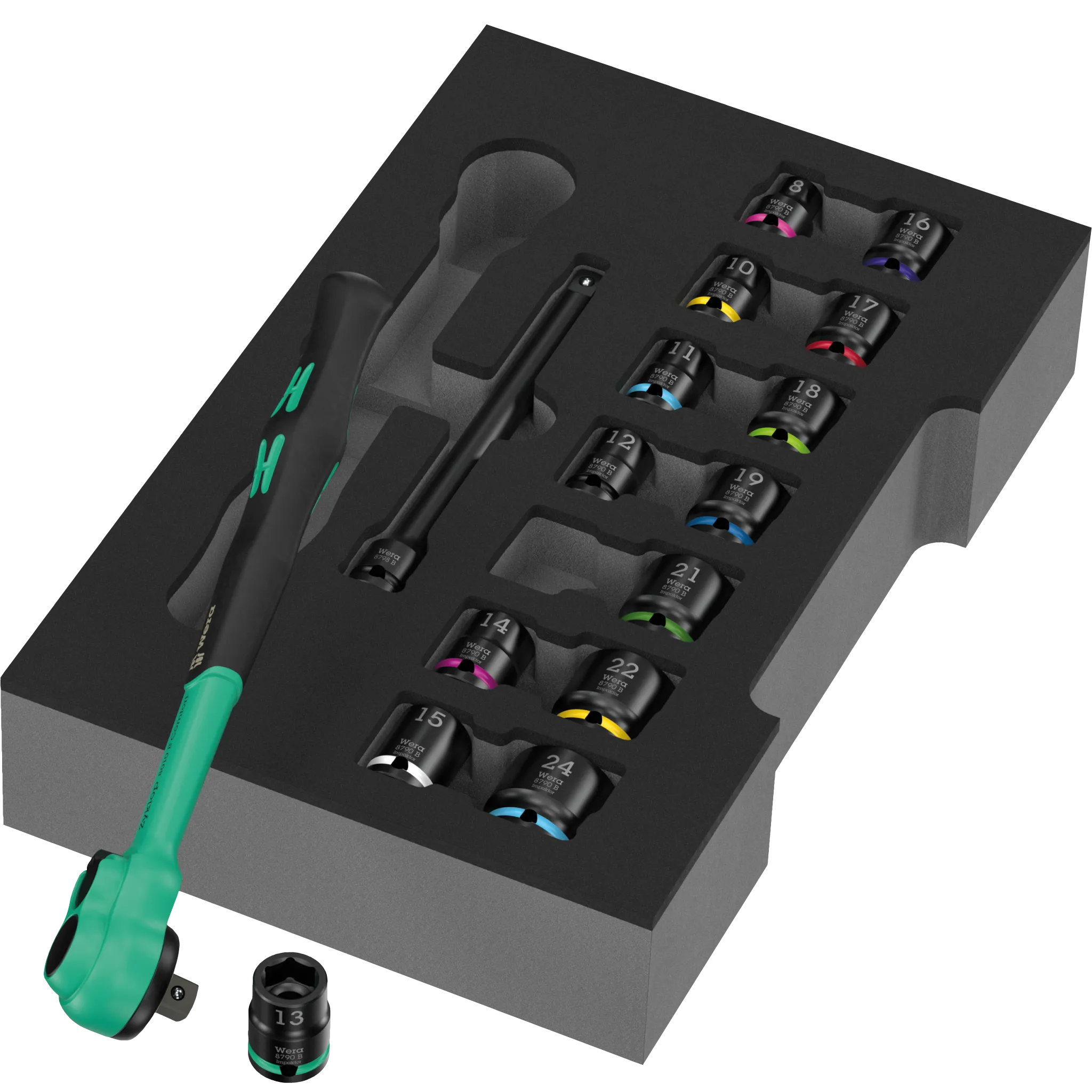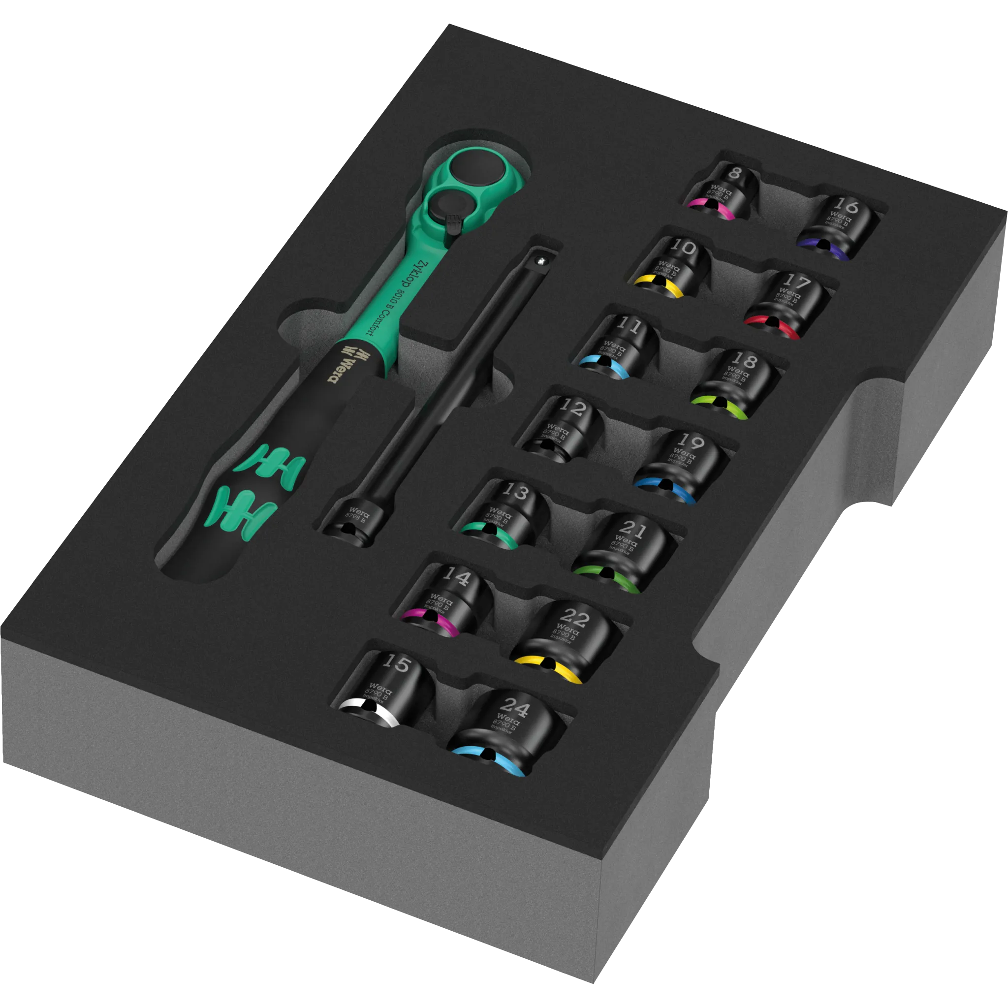 Das Zyklop Comfort Knarren Set 3/8 Zoll in Einlage liefert Dir eine ganz besondere 3/8 Zoll Knarre mit angenehmem Komfortgriff und einer handschmeichelnden Vollummantelung. Dazu eine Verlängerung und Nüsse von 8 bis 24 mm. Für Projekte in Haus und Werkstatt hast Du damit die gängigen Größen sofort parat – griffig, präzise und schnell. Die Schaumstoffeinlage hält alles übersichtlich an Ort und Stelle, ob in der Werkbank-Schublade, im mobilen Koffer oder in deiner L-Boxx. Ein Set, das gut in der Hand liegt und Deine Arbeit spürbar angenehmer macht – täglich einsatzbereit, typisch Wera.