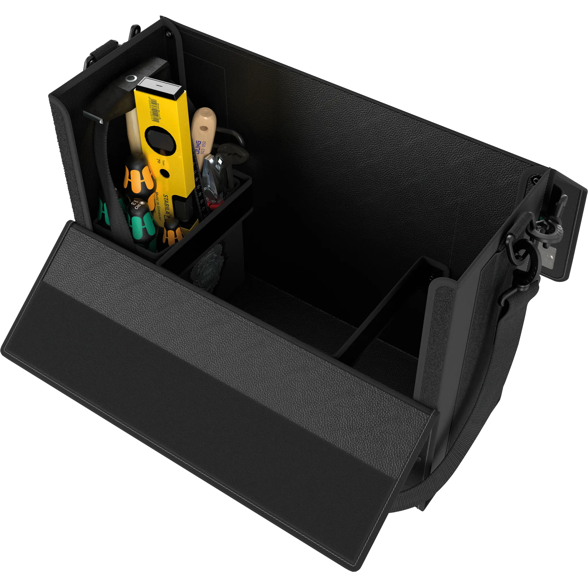Der Werkzeug Container XL bietet Dir extra Stauraum durch die flexibel platzierbaren Köcher und ein cleveres Klettsystem, das sowohl innen als auch außen Flexibilität und maximale Raumausnutzung garantiert. So hast Du ein deutlich variableres System als mit einem herkömmlichen Werkzeugkasten. So passt all Dein wichtiges Werkzeug in und an den Container. Das robuste, formstabile Material schützt Dein Werkzeug vor Beschädigungen und Nässe, damit es lange einsatzbereit bleibt. Der gepolsterte, verstellbare Tragegurt sorgt für maximalen Tragekomfort, während die eng am Körper anliegende Position des Containers Deine Hände frei hält. Inklusive einem Wera 2go 4 Köcher mit individuell einstellbarem Klett-Teiler für Schraubendreher und weiteres Werkzeug.